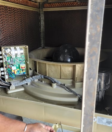 A faulty motor of an Industrial Air Cooler (Air Duct Diffuser System) was fully rewound, rebuilt, and reinstalled.